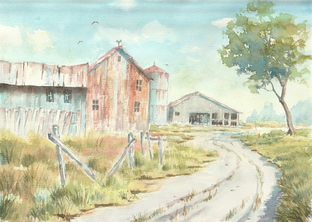アメリカ、コロラドの廃農場を描いてみました。草むらをもう少しシンプルに描いた方が良かったかなと思います。