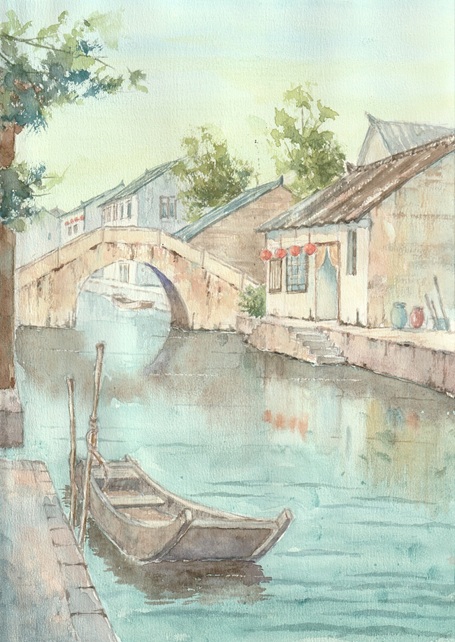 中国、蘇州の運河を描いてみました。手堅くまとまった感じはありますがもう少しインパクトが欲しいところです。