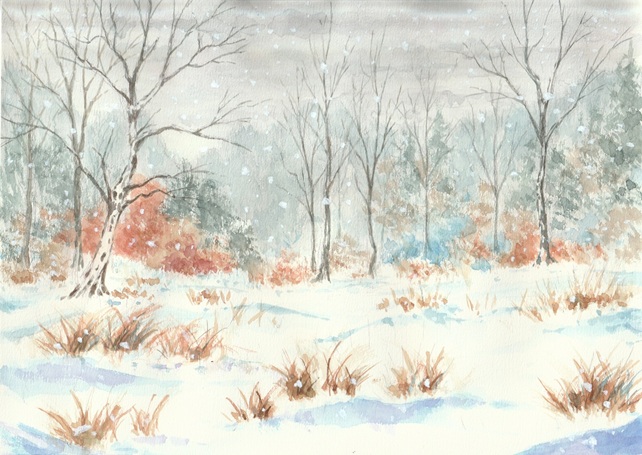 雪が降り静寂に包まれた森を描いてみました。配色はまぁまぁかと思いますが、何か全体のバランスが良くない感じです。